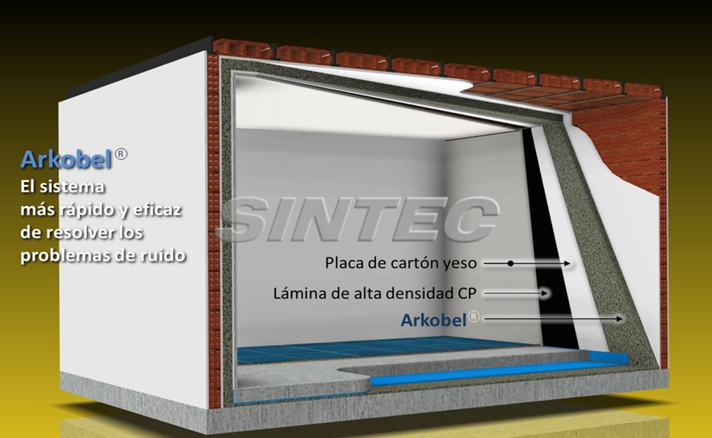 The soundproofing that we can obtain with Arkobel is better than that achieved when using conventional systems with much thicker materials.