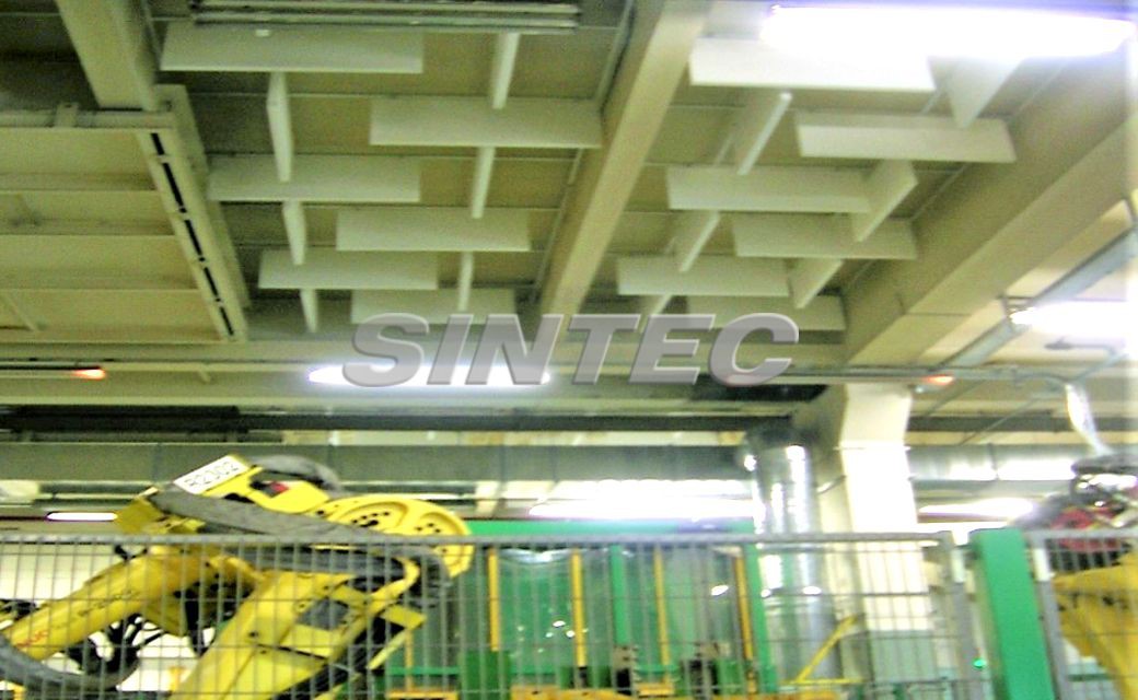 Los bafles absorbentes están especialmente indicados para aquellos lugares donde las condiciones no permitan la instalación de techos absorbentes continuos. El montaje se realiza mediante suspensión por cable y anilla.
