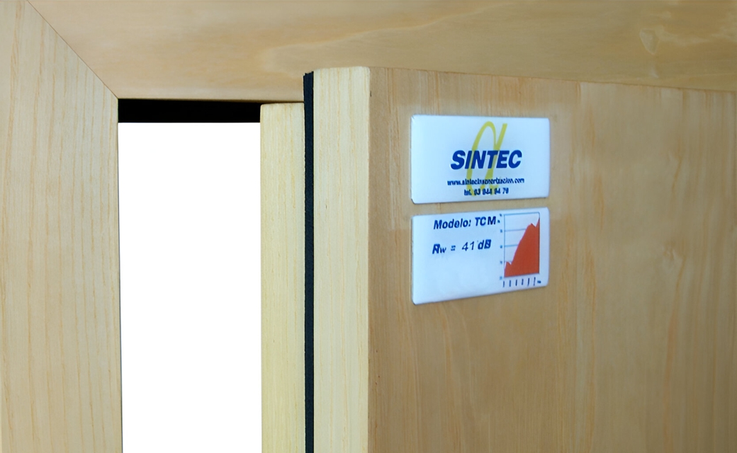 Las puertas acústicas modelo TCM fabricadas por SINTEC son puertas realizadas en madera diseñadas para ofrecer unos niveles de aislamiento acústico muy superiores a puertas similares existentes en el mercado.