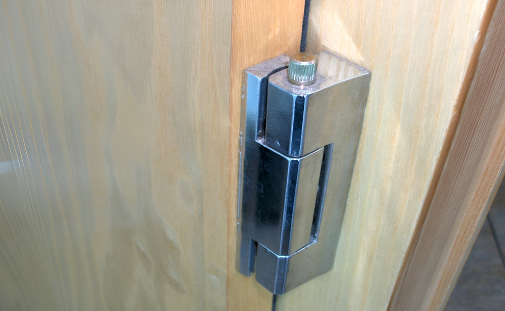 Cierre de duraluminio cromado con leva de presión ajustable, con punto de trabajo en el centro de la hoja o cierre de pomo o maneta con mecanismo interno estándar.