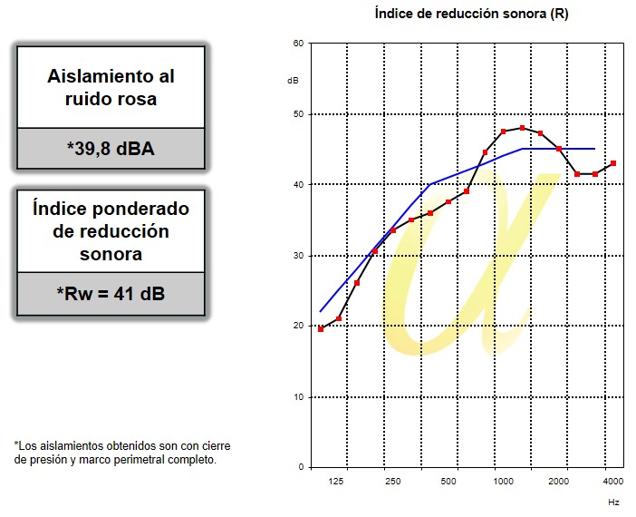 Ajuste hoja -marco realizado mediante doble burlete de neopreno de alta densidad, provisto de cámaras de aire en su interior para permitir la compresión del material.