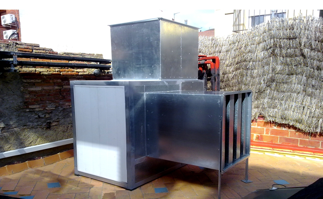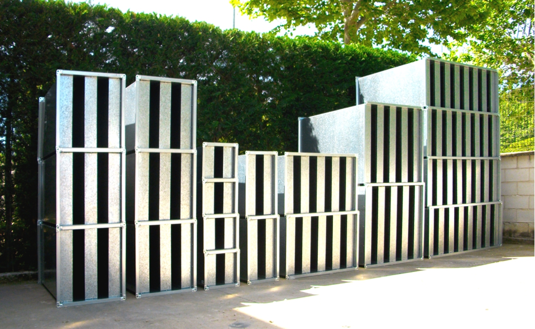 Las celdillas están fabricadas mediante bandejas de chapa galvanizada y lana mineral con velo protector en ambas caras. La envolvente de las celdillas es también de chapa galvanizada. El conjunto se refuerza perimetralmente en los extremos con dos bridas de conexión tipo METU de 30 mm que sirven a su vez como elementos de fijación a los conductos.